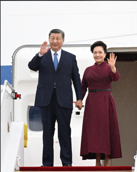 当地时间5月5日下午,国家主席习近平乘专机抵达巴黎,应法兰西共和国总统马克龙邀请,对法国进行国事访问。习近平乘坐专机抵达巴黎奥利机场时,法国总理阿塔尔等法国政府高级代表热情迎接。新华社记者 燕雁 摄习近平主席夫人彭丽媛,中共中央政治局常委、中央办公厅主任蔡奇,中共中央政治局委员、外交部部长王毅等陪同人员同机抵达。中国驻法国大使卢沙野也到机场迎接。习近平乘车从机场赴下榻饭店途中,华人华侨和中国留学生自发等候在道路两旁,高举“中法友谊万岁!”、“祝习近平主席访问法国取得圆满成功!”等红色横幅,挥舞中法两国国旗,敲锣打鼓,舞龙舞狮,热烈欢迎习近平主席到访。来源:人民日报2024-05-20