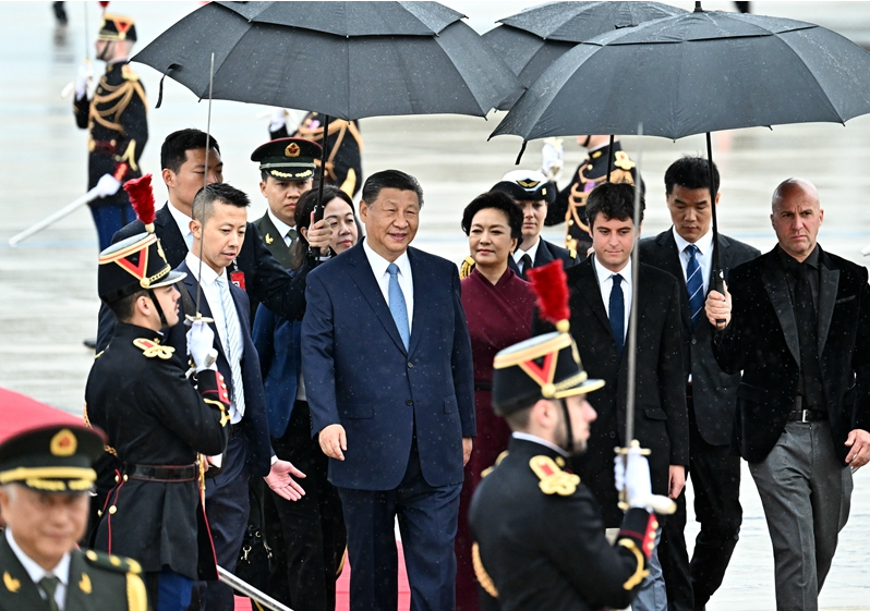 当地时间5月5日下午,国家主席习近平乘专机抵达巴黎,应法兰西共和国总统马克龙邀请,对法国进行国事访问。新华社记者 谢环驰 摄新华社巴黎5月5日电(记者 刘华 唐霁)当地时间5月5日下午,国家主席习近平乘专机抵达巴黎,应法兰西共和国总统马克龙邀请,对法国进行国事访问。习近平乘坐专机抵达巴黎奥利机场时,法国总理阿塔尔等法国政府高级代表热情迎接。当地时间5月5日下午,国家主席习近平乘专机抵达巴黎,应法兰西共和国总统马克龙邀请,对法国进行国事访问。习近平乘坐专机抵达巴黎奥利机场时,法国总理阿塔尔等法国政府高级代表热情迎接。新华社记者 丁林 摄习近平发表书面讲话。习近平指出,我很高兴对法国进行第三次国事访问,同法国人民一道庆祝中法建交60周年。作为东西方文明的重要代表,中国和法国长期以来相互欣赏、相互吸引。60年前,中法两国突破冷战藩篱,建立大使级外交关系。60年来,中法关系始终走在中国同西方国家关系前列。中法关系发展不仅给两国人民带来福祉,也为动荡不安的世界注入了稳定性和正能量。访问期间,我将同马克龙总统就新形势下中法、中欧关系发展,以及当前重大国际和地区问题深入交换意见。我希望通过这次访问,巩固两国传统友谊、增进政治互信、凝聚战略共识、深化各领域交流合作,用历史的火炬照亮前行的路,创造中法关系更加美好未来,为世界和平、稳定、发展作出新的贡献。