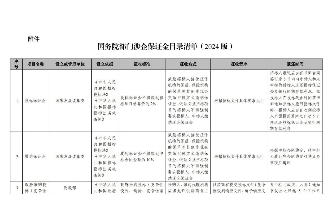 附件:国务院部门涉企保证金目录清单(2024版)